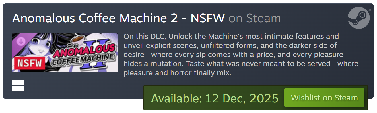 - Anomalous Coffee Machine 2 now out!Jun 21, 2025
